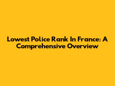 Lowest Police Rank In France: A Comprehensive Overview