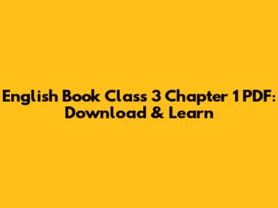 English Book Class 3 Chapter 1 PDF: Download & Learn