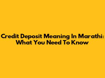 Credit Deposit Meaning In Marathi: What You Need To Know