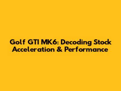 Golf GTI MK6: Decoding Stock Acceleration & Performance
