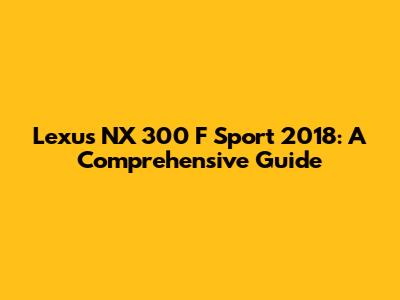 Lexus NX 300 F Sport 2018: A Comprehensive Guide
