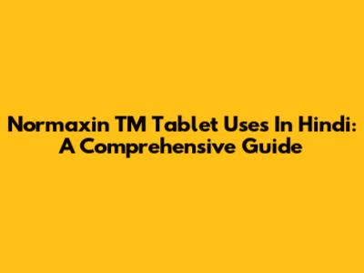 Normaxin TM Tablet Uses In Hindi: A Comprehensive Guide