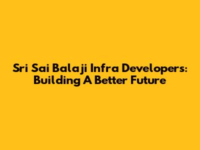 Sri Sai Balaji Infra Developers: Building A Better Future