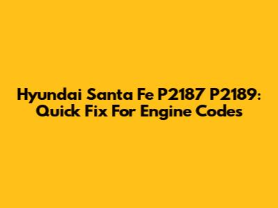 Hyundai Santa Fe P2187 P2189: Quick Fix For Engine Codes