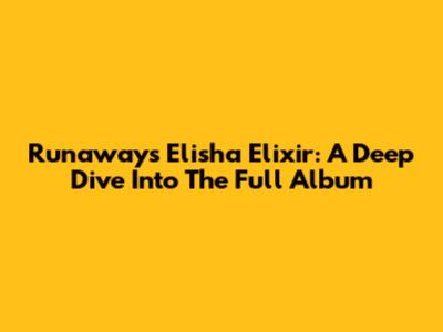 Runaway's Elisha Elixir: A Deep Dive Into The Full Album