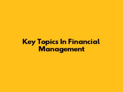 Key Topics In Financial Management