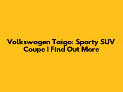 Volkswagen Taigo: Sporty SUV Coupe | Find Out More