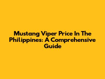 Mustang Viper Price In The Philippines: A Comprehensive Guide