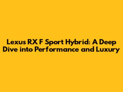 Hey guys! Today, we're diving deep into the Lexus RX F Sport Hybrid, a vehicle that perfectly blends luxury with sporty performance and eco-friendly technology. If you're in the market for a premium SUV that doesn't compromise on style, efficiency, or driving dynamics, you've come to the right place. We're going to break down everything that makes this hybrid stand out, from its stunning design and luxurious interior to its innovative hybrid powertrain and engaging driving experience. So, buckle up and let's get started!