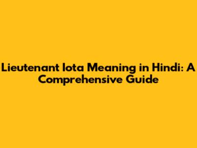 Hey guys! Ever stumbled upon the term "Lieutenant Iota" and scratched your head wondering what it means, especially in the context of Hindi? Well, you're not alone! This article is here to break down the meaning of Lieutenant Iota in Hindi, explore its origins, and provide a comprehensive understanding of its usage. So, buckle up and get ready to dive deep into the world of military terminology and its Hindi translation.