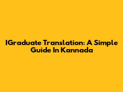 IGraduate Translation: A Simple Guide In Kannada