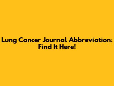 Lung Cancer Journal Abbreviation: Find It Here!