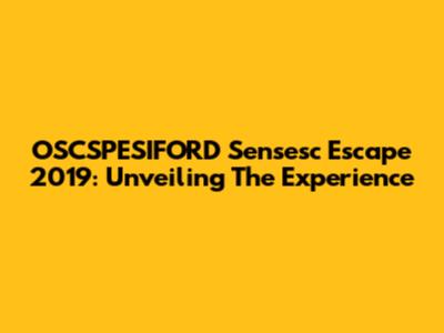 OSCSPESIFORD Sensesc Escape 2019: Unveiling The Experience