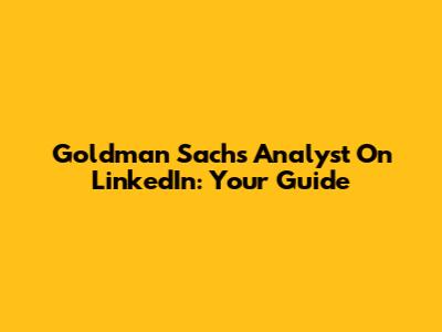 Goldman Sachs Analyst On LinkedIn: Your Guide