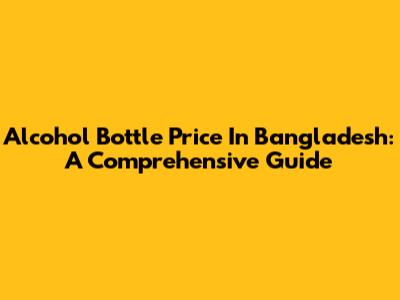 Alcohol Bottle Price In Bangladesh: A Comprehensive Guide