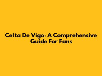 Celta De Vigo: A Comprehensive Guide For Fans