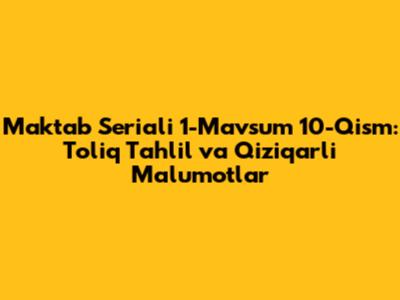 Maktab seriali 1-mavsum 10-qismi haqida gaplashamiz, aziz tomoshabinlar! Ushbu maqolada serialning ushbu qismini to'liq tahlil qilamiz, qiziqarli faktlarni o'rganamiz va serial haqidagi barcha savollaringizga javob berishga harakat qilamiz. Agar siz ham Maktab serialining muxlisi bo'lsangiz, unda bu maqola aynan siz uchun!
