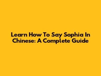 Learn How To Say 'Sophia' In Chinese: A Complete Guide