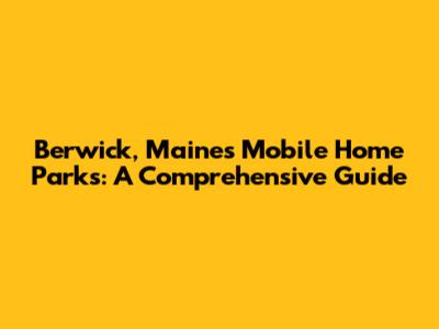 Berwick, Maine's Mobile Home Parks: A Comprehensive Guide