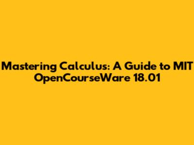 Hey everyone! Are you ready to dive into the world of calculus? It's a fundamental subject in mathematics, and it's super important for anyone interested in science, engineering, economics, or even just understanding how the world works. And guess what? You don't have to spend a fortune or even leave your house to learn it! Thanks to MIT OpenCourseWare, you can access amazing calculus resources for free. In this article, we'll explore MIT OpenCourseWare's Calculus 18.01, giving you a comprehensive guide to understanding this awesome course. Let's get started!