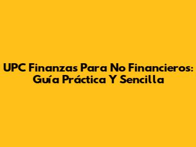 UPC Finanzas Para No Financieros: Guía Práctica Y Sencilla