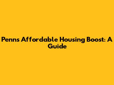 Penn's Affordable Housing Boost: A Guide
