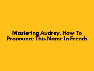 Mastering Audrey: How To Pronounce This Name In French