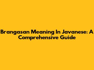 Brangasan Meaning In Javanese: A Comprehensive Guide