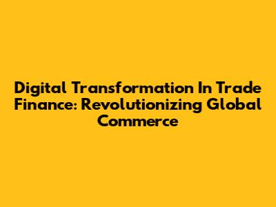 Digital Transformation In Trade Finance: Revolutionizing Global Commerce