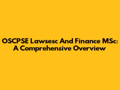 OSCPSE Lawsesc And Finance MSc: A Comprehensive Overview