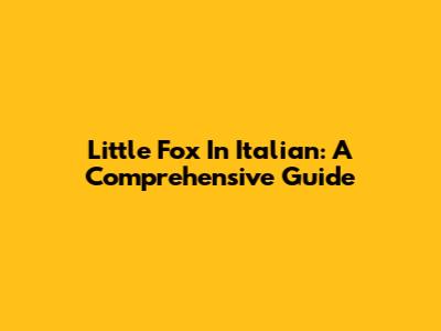 Little Fox In Italian: A Comprehensive Guide