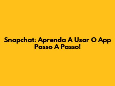 Snapchat: Aprenda A Usar O App Passo A Passo!