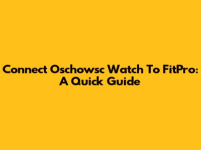 Connect Oschowsc Watch To FitPro: A Quick Guide