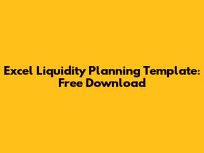 Excel Liquidity Planning Template: Free Download
