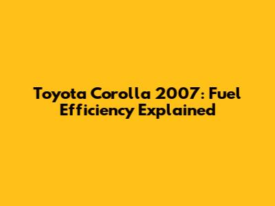 Toyota Corolla 2007: Fuel Efficiency Explained