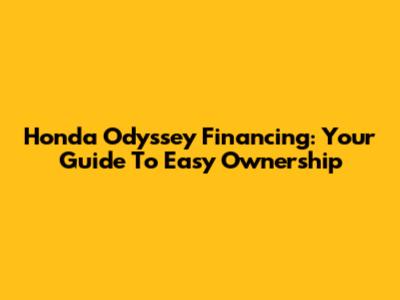 Honda Odyssey Financing: Your Guide To Easy Ownership