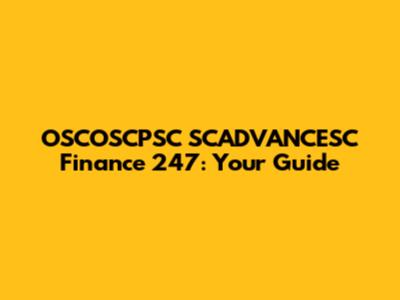 OSCOSCPSC SCADVANCESC Finance 247: Your Guide