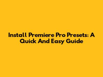 Install Premiere Pro Presets: A Quick And Easy Guide
