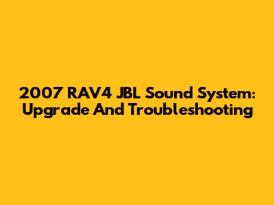 2007 RAV4 JBL Sound System: Upgrade And Troubleshooting
