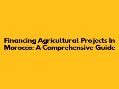 Financing Agricultural Projects In Morocco: A Comprehensive Guide