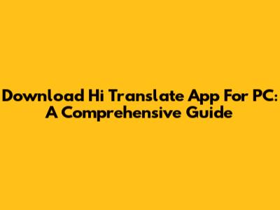 Download Hi Translate App For PC: A Comprehensive Guide