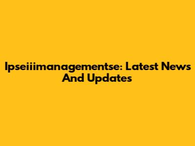 Ipseiiimanagementse: Latest News And Updates