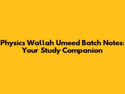 Physics Wallah Umeed Batch Notes: Your Study Companion