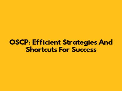 OSCP: Efficient Strategies And Shortcuts For Success