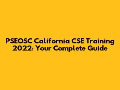 PSEOSC California CSE Training 2022: Your Complete Guide