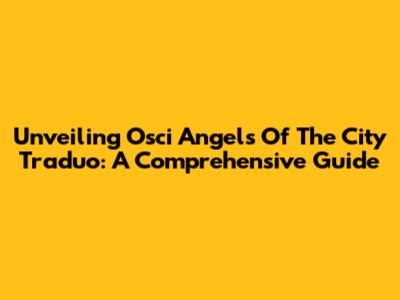 Unveiling Osci Angels Of The City Traduo: A Comprehensive Guide