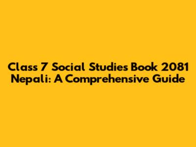 Class 7 Social Studies Book 2081 Nepali: A Comprehensive Guide