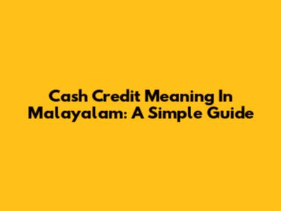 Cash Credit Meaning In Malayalam: A Simple Guide