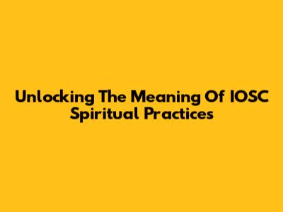 Unlocking The Meaning Of IOSC Spiritual Practices