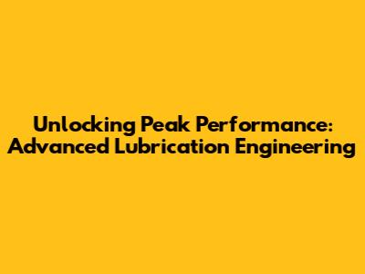 Unlocking Peak Performance: Advanced Lubrication Engineering
